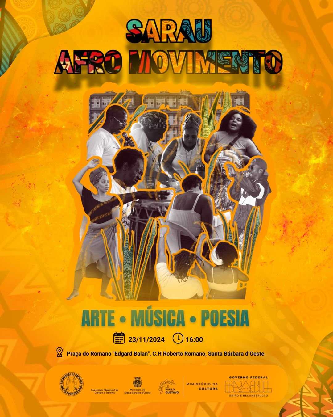 O "Sarau Afro Movimento" é um projeto cultural de grande relevância, projetado para resgatar e difundir a cultura afro-brasileira por meio de manifestações culturais tradicionais. As atividades serão realizadas na Área de Lazer Edgar Balam, no Conjunto Habitacional Roberto Romano, uma região periférica da cidade, durante o mês de novembro, em luta e reflexão ao Mês da Consciência Negra.