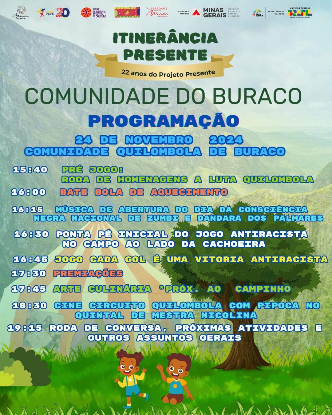 Realização Associação Projeto Presente , Associação das Comunidades Quilombolas de Tres Barras, Buraco e Cubas e Ponto Cultural e Ambiental da Serra do Cipó